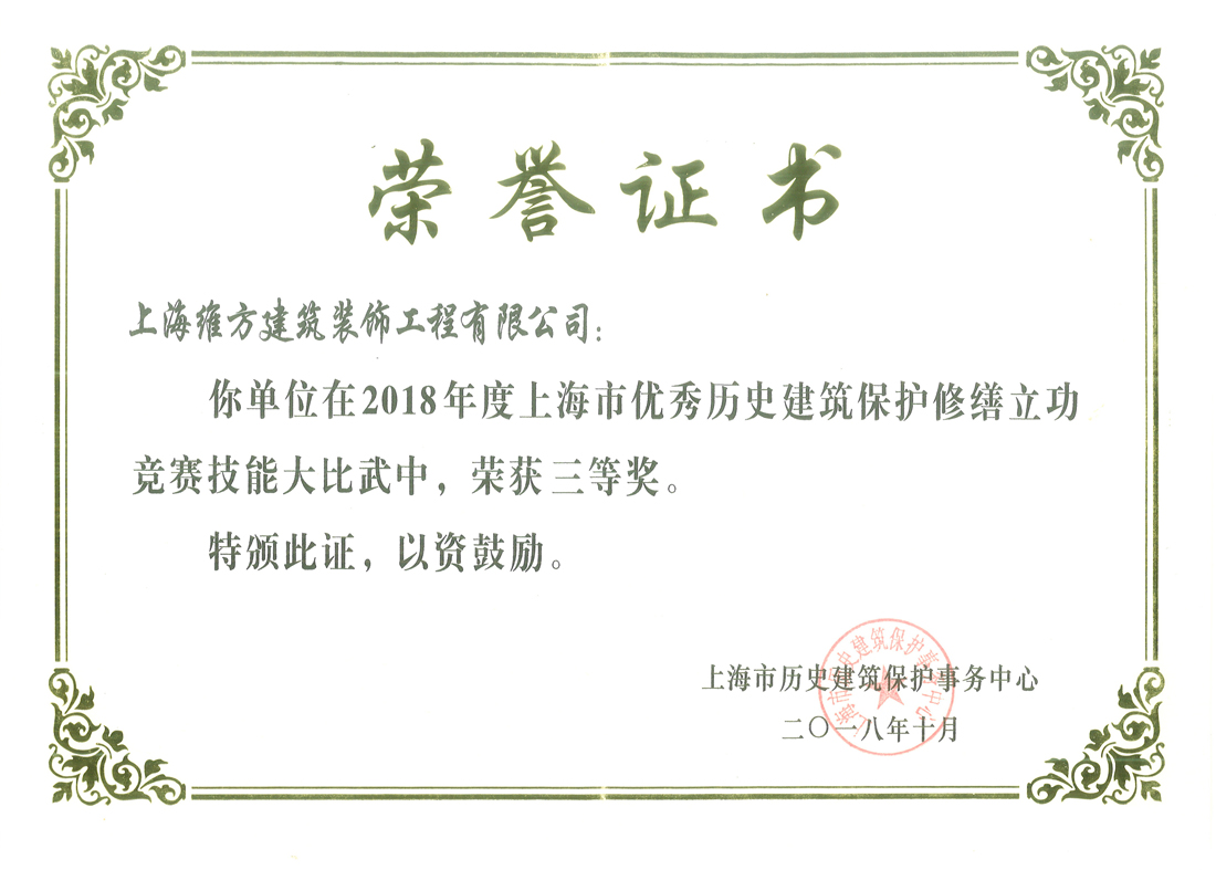 上海維方在2018年度歷保立功競賽技能比武中榮獲三等獎!