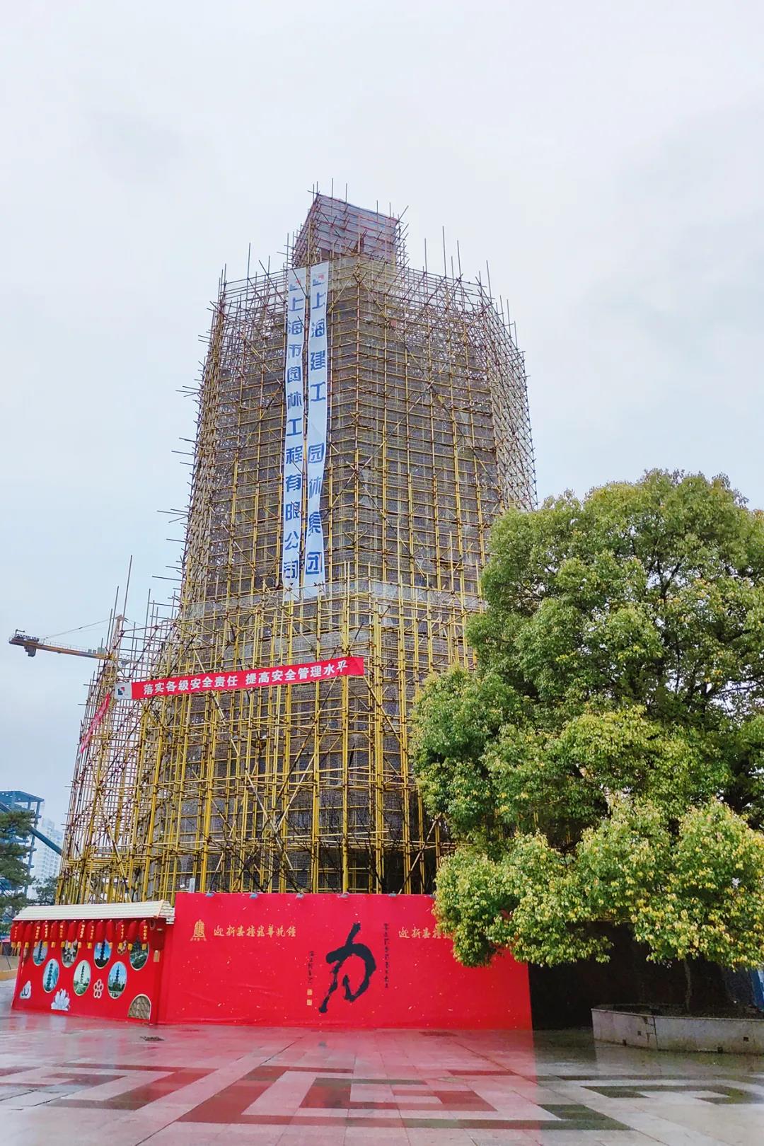 ? ? ? ??為了在龍華塔保養(yǎng)維護過程中,腳手架不與龍華塔有任何部位接觸,腳手架搭建方案經(jīng)過縝密設計與嚴格審查后,才得以實施。腳手架總重量達100多噸,從搭建方案設計到搭建完成,共耗時近4個月,占據(jù)了本次龍華塔保養(yǎng)維護項目總工期的近一半。