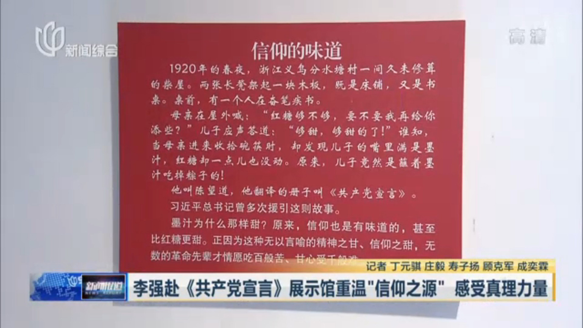 ? ? ? ? 1920年春,陳望道在浙江老家柴房苦譯《共產(chǎn)黨宣言》,曾將墨水誤作紅糖,吃下母親送來的粽子。“蘸著墨汁吃粽子,還說味道很甜”。這則被習(xí)近平總書記多次提及的故事“真理的味道”,在展廳中通過視頻播放。市領(lǐng)導(dǎo)在此駐足凝視,李強(qiáng)表示,在陳望道先生的舊居重溫“信仰之源”,確實(shí)深受觸動(dòng)和啟迪,也感受到強(qiáng)大的真理力量,這對(duì)于我們不忘初心、牢記使命,把新時(shí)代中國特色社會(huì)主義推向前進(jìn),是一次深刻的教育。從歷史到現(xiàn)實(shí),我們對(duì)馬克思和《共產(chǎn)黨宣言》的最好紀(jì)念,就是把習(xí)近平新時(shí)代中國特色社會(huì)主義思想這一當(dāng)代中國馬克思主義研究好、宣傳好、貫徹好。