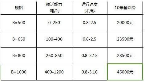 以下是皮帶輸送機一個參考價格,不代表實際的價格
